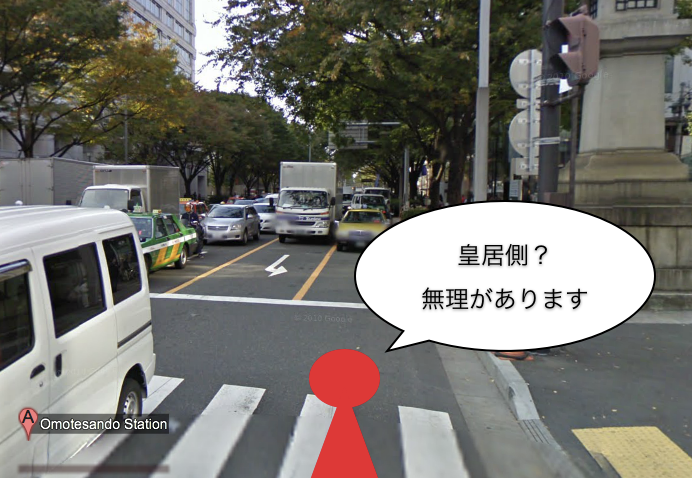 東京だったら「表参道の皇居側の歩道」 と言う感じでしょうか。
