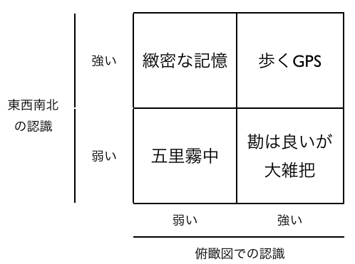そして、「個別の場所で方角をきちんと把握しているかどうか」はそれとは別軸にある、と。