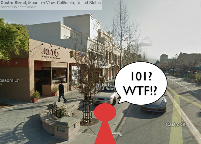 (ちなみに、101と237は北を上として平たくつぶれたXのように交差する。つまり交差地点ではどちらも南北というより東西に走っている。言いたいことは微妙にわかるけど意味不明)
