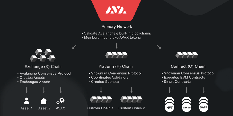 ファイナンス用高速ファーストレイヤー、Avalancheの開発元。メインネットを2020年9月にローンチ。その2ヶ月前に行ったトークンセールでは$42Mが5時間で売り切れた。Avalancheは4500 TPS、ファイナリティに至る時間は3秒としている。AvalancheはExchange Chain (X-Chain)、Contract Chain (C-Chain)、Platform Chain (P-Chain)の3つのチェーンからできている。X-Chainがデジタルアセット(株・債券など)を発行するチェーン、C-ChainはEVMのAvalancheバージョン、P-Chainはバリデータのコーディネーションとサブネット生成に使わる。3つに分けることでフレキシビリティ、スピード、セキュリティのいずれをも最適化できるとしている。